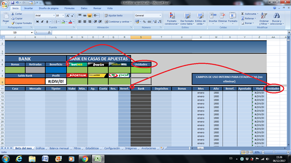 Tengo una hoja de excel donde recojo los datos de apuestas que hago, en la hoja principal tengo muchos datos (Beneficio, mercado etc), tengo una columna donde me recoge los datos de las unidades que gano por apuesta, y luego una celda en la parte superior del excel donde va recogiendo el total de las unidades ganadas hasta el momento, lo que quiero es mover las dos casillas, una esta en la zona AA que es la que recoge por apuestas y la otra esta en la ES y quiero cambiarlas de lado sin que se modifiquen los datos y fórmulas de las demás