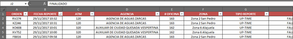 Esta es la tabla en cuestión, faltan más columnas, en la columna A esta un numero de orden, es un numero "unico", en esa fila esta la información del evento, el macro que realicé por grabación, busca en la columna A el numero de orden (el resultado solamente se mostrará una fila), luego busca la palabra Pendiente y la cambia a finalizado, luego borra el filtro para volver a mostrar todos los datos.