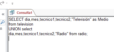 1- 2003 ¿Es posible que en un informa me salgan todos los registros de la Tabla:Televisión + todos los registros de la Tabla:radio + todos los registros de la Tabla:bilblioteca?