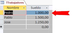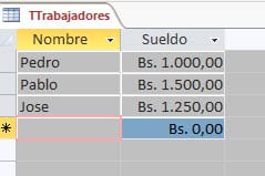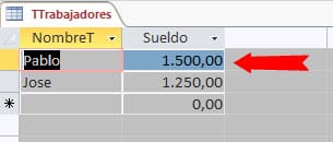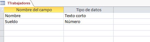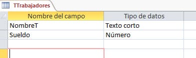 1. La tabla TTrabajadores que creé contenía dos campos: