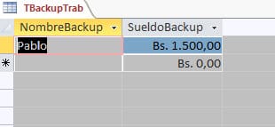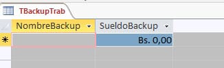6. Y abrí la TBackupTrab para verificar si hizo el respaldo pero no apareció nada.