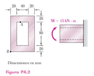 Si se sabe que el par mostrado en la figura actúa en un plano vertical, determine los esfuerzos en a) el punto A, b) el punto B.