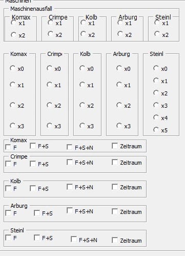 Tengo un combobox con 12 Maquinas cada maquinas esta en lazada a 3 Frame, el 1.- tiene 3 botones, el 2 tiene También 3 Botones y el tercer Frame tiene 4 checkbox( aquí puedo marcar hasta 2 Checkbox).