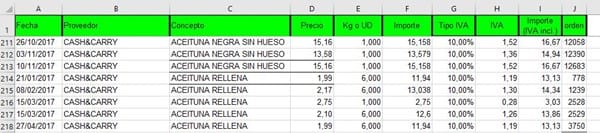 Tengo un listado de albaranes de compra que he ordenado por concepto y luego por un orde que tengo como veis en la imagen adjunta.
