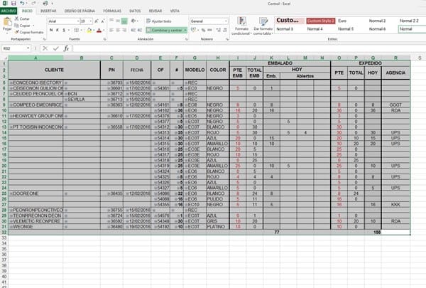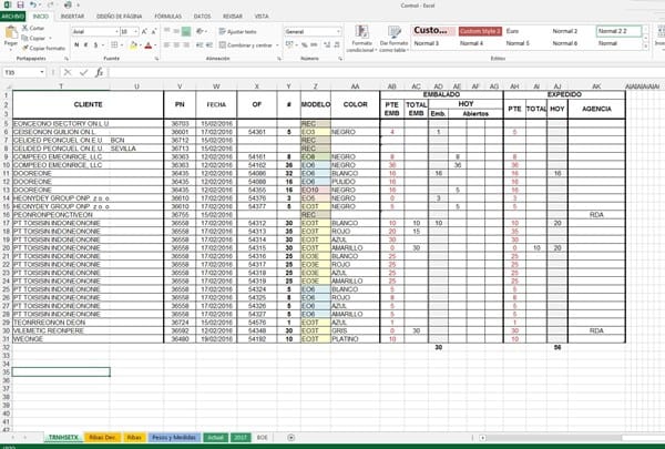 En mi trabajo manejo un listado en el que controlo los pedidos que se van embalando y expidiendo de los diferentes clientes con los que trabajamos.