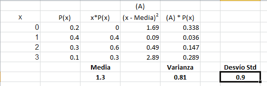 Instrucciones. Calcula la media, varianza y desviación estándar de la siguiente distribución de probabilidad discreta.