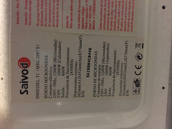 Me gustaría saber la potencia de mi microondas savoid D80D20ELT1 (MSG-2087S).