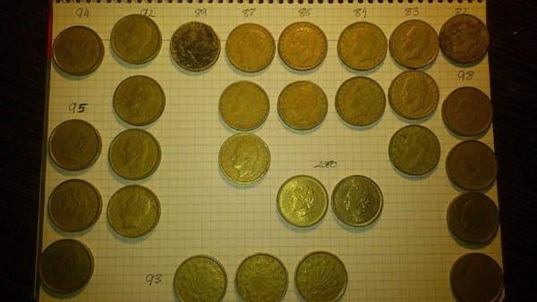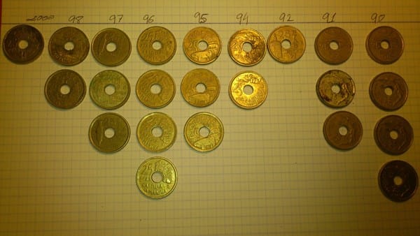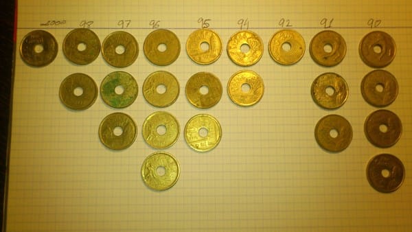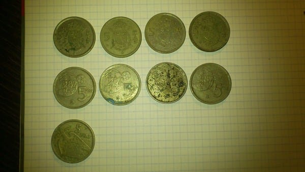 Y una en cuestión de 5 pesetas que me parece defectuosa... No parece ser por desgaste!