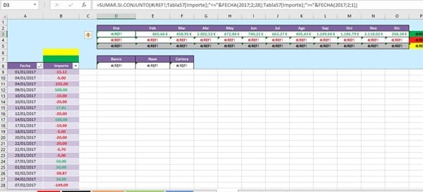 Tengo una tabla de contabilidad y necesito sumar los valores positivos agrupados en un mes. La tabla sería así. Gracias