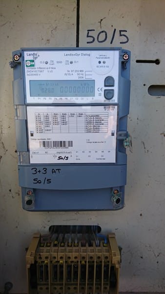 A pie del transformador está el contador trifásico y salen hacia la casa, que está a unos 300 o 400 metros, las tres fases soterradas, y aéreas, poco antes de llegar a la casa.