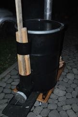 Una vez construida, según la temperatura de salida del humo decidiré si se instala otro intercambador de aire forzado creando una segunda cámara con un bidón más grande que por la que se forzaría la entrada de aire del ambiente por la parte baja del bidón y sacándola por arriba de modo que forzaría el paso de aire evacuando más calor de la superficie del primer bidón.