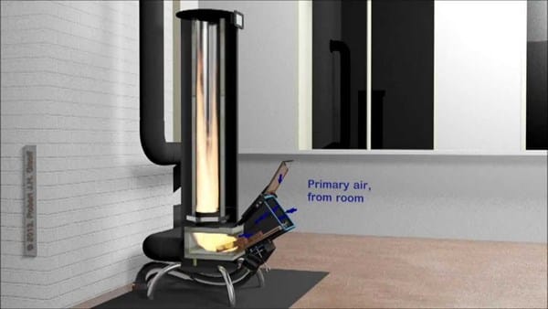 Es una estufa tipo roket, pero con la idea de hacerla para calentar más rápido y no para acumular calor como eran las originales "Rocket stove".
