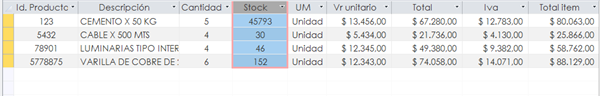 Luego en el subformulario en el cuadro de texto independiente llamado "Stock" en sus propiedades "origen del registro" escogí "Saldo".