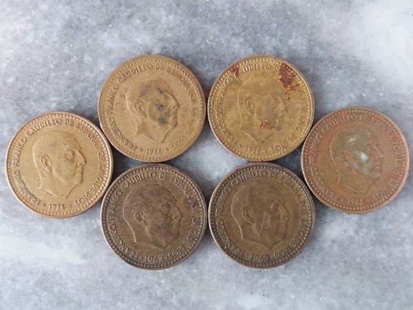 Estos son los 6 Francos que tengo y en la maiora se puede ver el numero dentro de las estrellas. Quisera saber el valor de ellos pues quisiera venderlos porque no los estoy usando.