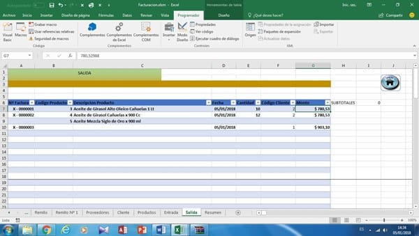 Copiar el Nº de remito, la fecha el id del cliente, y la compra realizada ( código producto, descripción, cantidad, precio por unidad, precio total de cada producto y monto de la factura) y llevarlo uno de bajo del otro a una planilla llamada "Salida" pero me aparece asi: