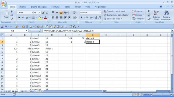 Primero se utilizar la formula BUSCARV, pero necesito una fórmula que pueda buscar los datos que para poner por ejemplo en dos celda 3, 2 y que de en otra celda automáticamente datos 14
