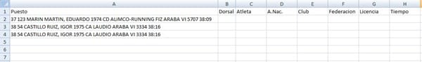 Existen dos detalles en la macro que no logro identificar que son los datos de "Club" y "Federación", ya que en tus ejemplos no puedo identificar algún dato distintivo para saber cuáles palabras son para "Club" y cuáles son para "Federación". Te puse las primeras palabras para Club y la última palabra para "Federación". Si existe alguna característica en particular que identifique los datos, me la dices y la adapto a la macro, si no existe, entonces tendrás que separar esos datos de manera manual, pero ya es menos trabajo.