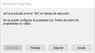 'Agrega los items al listbox With UserForm1 .ListBox1.AddItem Val(UserForm1.ComboBox1.Text) .ListBox1.List(i, 0) = Space(10 - 2 * Len(.ListBox1.List(i, 0))) & .ListBox1.List(i, 0) .ListBox1.List(i, 1) = UserForm1.ComboBox2.Text If UserForm1.OptionButton1 = True Then .ListBox1.List(i, 2) = "5" '.ListBox1.List(i, 2) = Space(10 - 2 * Len(.ListBox1.List(i, 2))) & .ListBox1.List(i, 2) End If Total2 = Mid(Me.ListBox1.List(i, 2), 1, 2) * Me.ListBox1.List(i, 0) .ListBox1.List(i, 3) = Total2 '.ListBox1.List(i, 3) = Space(10 - 2 * Len(.ListBox1.List(i, 3))) & .ListBox1.List(i, 3) .ListBox1.List(i, 4) = "$ " & UserForm1.ComboBox3.Text .ListBox1.List(i, 5) = UserForm1.ComboBox4.Text i = i + 1 End With
