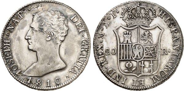 Moneda. De jose Napoleón en plata de 1810 27 grs MBC