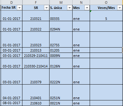 Fórmula para contar eventos ocurridos en un mes