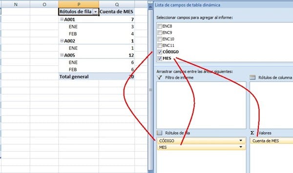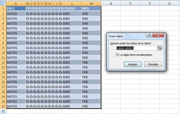 La columna L son los códigos y la M son los meses que los tengo ene, feb, mar, etc