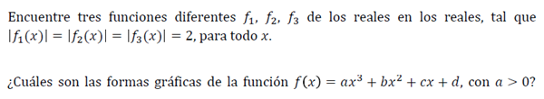 Encuentre tres funciones diferentes f1, f2, f3 de los reales en los reales