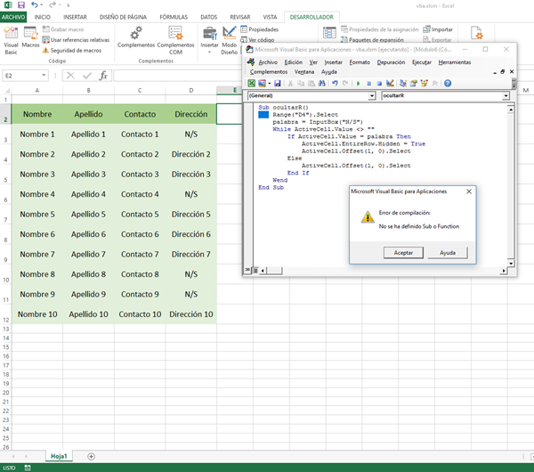 No se ha definido Sub o Function