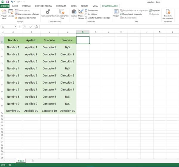Mi ejemplo va de una Tabla en "Hoja1", como se muestra a continuación: