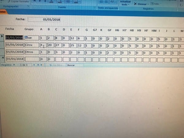 Pero yo necesito que se me queden fijos los datos del campo grupo que son (base - circu y otros) para no tener que escribirlos cada vez que añado una nueva fecha. Foto 3.