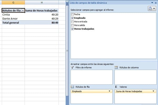 Listo, con eso tienes las horas por cada empleado. Lo puedes aplicar por cada mes, incluso puedes utilizar la tabla dinámica para otros informes.