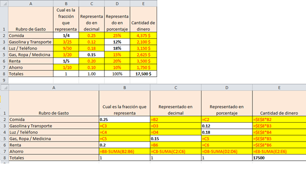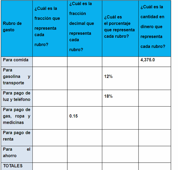 b. ¿Cuál sería la fracción que representa cada rubro?