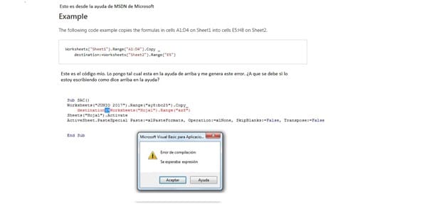 Error al copiar datos de una hoja a otra.