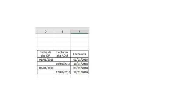 Tengo un archivo donde manejo fecha de lata opredaores y fecha de lata administrativo quiero que el resultado se coloque en una tercera columna llamada Alta