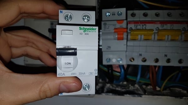 Me hice con el conocido diferencial superinmunizado de Schneider electric de 40A 30mah (el mismo que sale en el tutorial).