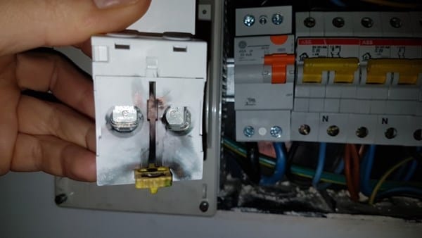 Retiré el diferencial antiguo, y coloqué el superinmunizado correctamente, el cable azul (neutro) en la N del diferencial, y el negro (fase) en el otro lado. No había cables haciendo contacto unos con otros ni nada de eso. Con todos los magnetometros subidos, primero subí el diferencial, y después, al subir y activar el ICP, pegó una pequeña explosión en la unión del cable neutro que viene de fuera con el diferencial superinmunizado (incluso han quedado pequeños restos de la quemazón por la explosión en la cubierta azul del neutro y en la parte de abajo del diferencial.)