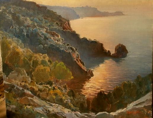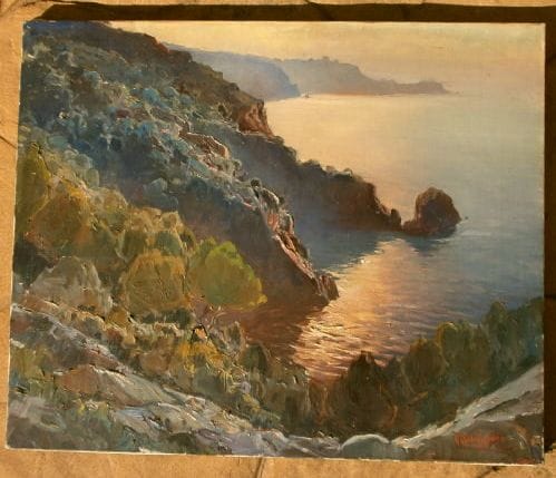 Se trata de un óleo firmado por FERRAN PONSJOAN (Sant Feliu de Guixols). El tema es una amanecer en la Costa Brava. Es un óleo sobre lienzo montado sobre bastidor de madera. Mide 46 x 55 cm. No lleva marco.