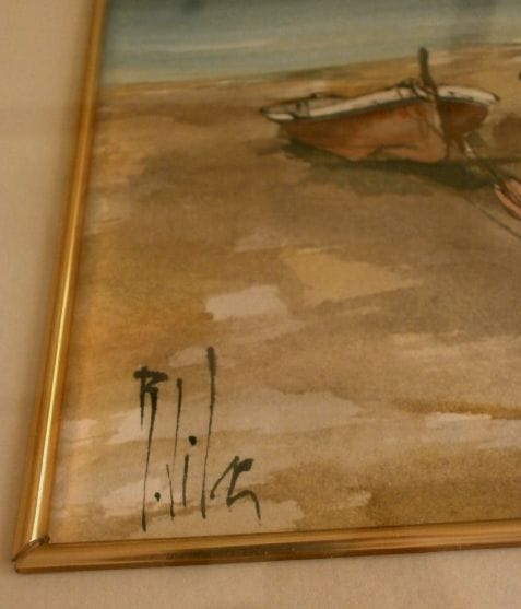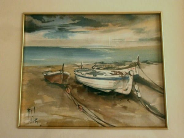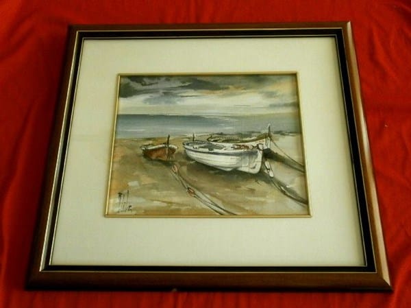2º.- Acuarela. Marina. Firmada pero no se de quien es (ver firma). La pintura mide 26 x 21 cm.
