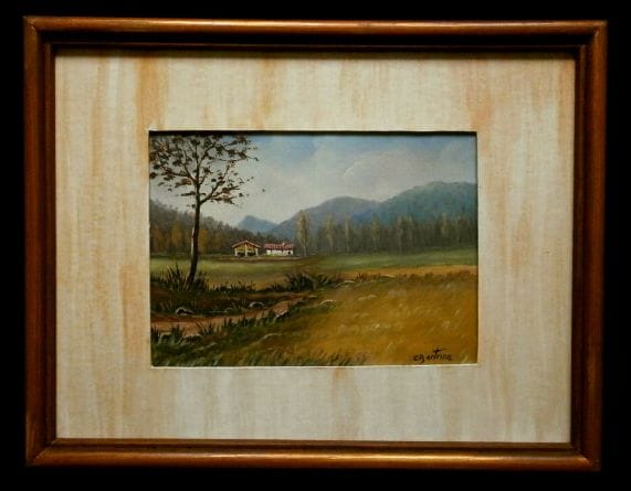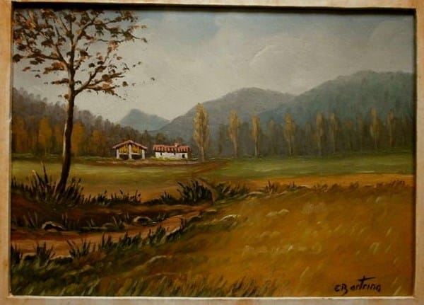 1º.- OLEO sobre Tabla 37,5 x 29 cm con marco.Firmado por E. Bartrina. Paisaje de Olot.