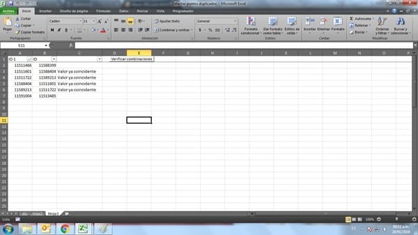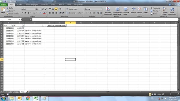 Bien, tengo esta hoja de calculo con una macro que me dice "valor ya coincidente" en la columna c.