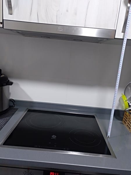 Acabo de reformar la cocina y me han instalado la campana a 56'5 cm de distancia a la vitrocerámica y encima no han medido bien y la vitro sobresale por un lado, es decir, no está centrada conforme a la campana. Me dicen que no pasa nada pero yo no lo veo, además la reforma es por un incendio y me da miedo.