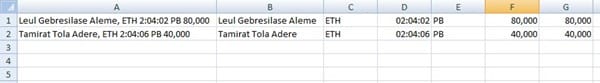 Precisamente estaba con este último enlace que te he mandado. Una maratón que se ha celebrado hoy en Dubai (naturalmente no es que guarde todo en la base, solo dentro de unos límites de calidad). Al final he metido los datos manualmente en la base (han entrado 20 marcas) pero me ha costado dios y ayuda (de hecho aún no he terminado) elaborar esto que mando también a una publicación americana: