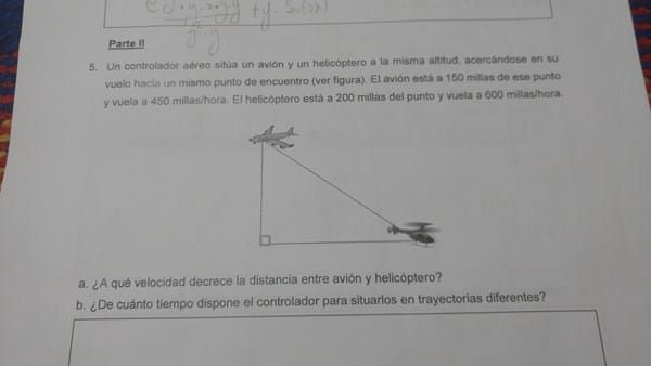 Llamemos A al punto donde se encuentra el avión, H donde el helicóptero y P al punto de encuentro. Además: a= distancia del avión, b=distancia del helicóptero, c=hipotenusa.