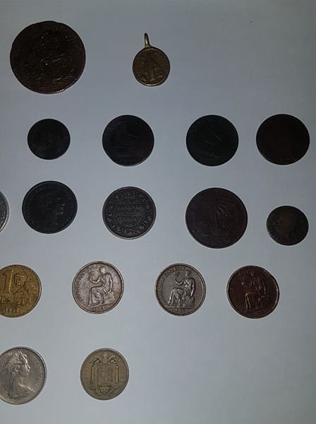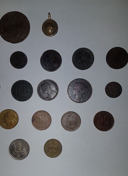 Tengo algunos sellos y monedas antiguas, me gustaría saber si alguno tiene valor y donde podría venderlos, siento mucha curiosidad por la historia de las dos medallas de la parte superior intempestate securitas y la cruz de San Benedicto, creo que hay una guerrera republicana también entre las monedas.