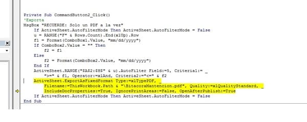 ActiveSheet.ExportAsFixedFormat Type:=xlTypePDF, _