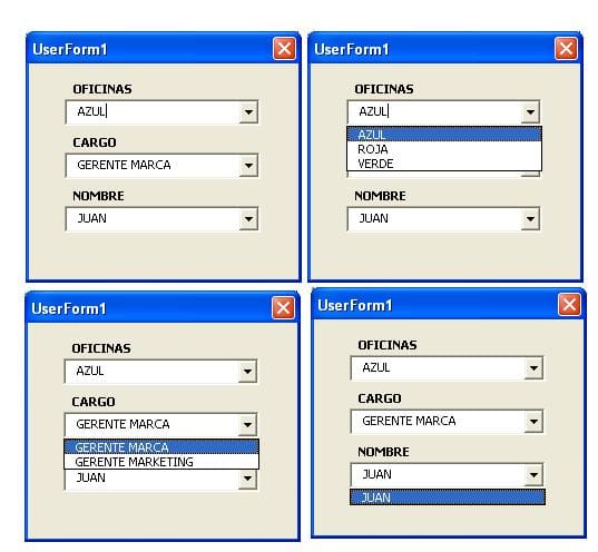 Cómo hago para que sean dependientes, es decir que si elijo oficina 1, los