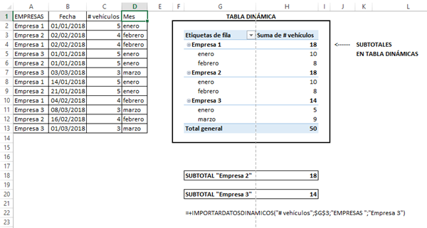 Además con las celdas de tablas dinámicas se pueden referenciar en otras celdas, dado que excel automáticamente inserta la función IMPORTARDATOSDINAMICOS(), además dichos datos permanecen estáticos.