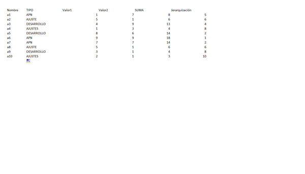 Por ejemplo que me seleccione todo los de APN y me haga un ranking, para luego devolverlo a su misma posición, luego todo lo de ajuste y haga lo mismo, cabe destacar que cada tipo esta ligado a un nombre único.