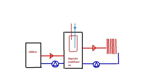 Estoy haciendo una reforma en mi vivienda y quiero instalar una caldera de pellets para calefacción con radiadores y acs con interacumulador, ¿alguien me podría facilitar el esquema?. La calefacción sería para unos 300m2. ¿Y sería necesario la instalación de un depósito de inercia? La mayoría me dicen que no.