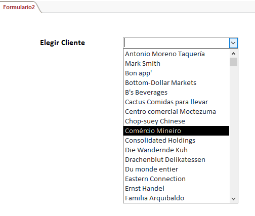 En el formulario frmContactos, hago doble click en el campo “NomClientes” y me abre el frmClientes en el registro correspondiente, filtrado.