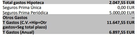 Esto implicaría que el concepto de los 5.000 euros consignado en el extracto, sería correcto. Cabría preguntarse por el sentido de pagar 5.000 euros al contado y con intereses por algo que en realidad va a estar satisfecho a plazos. Lo único que debe preocupar al banco es la coherencia en su contabilidad. Sería una irregularidad asignar un activo a un fin distinto del que motivó su cobro. Por lo que cabe entender que si el banco, consigna en el préstamo hipotecario 5.000 euros destinados a la compra de un seguro de vida temporal fijo, luego no puede no contratar ese seguro de vida.